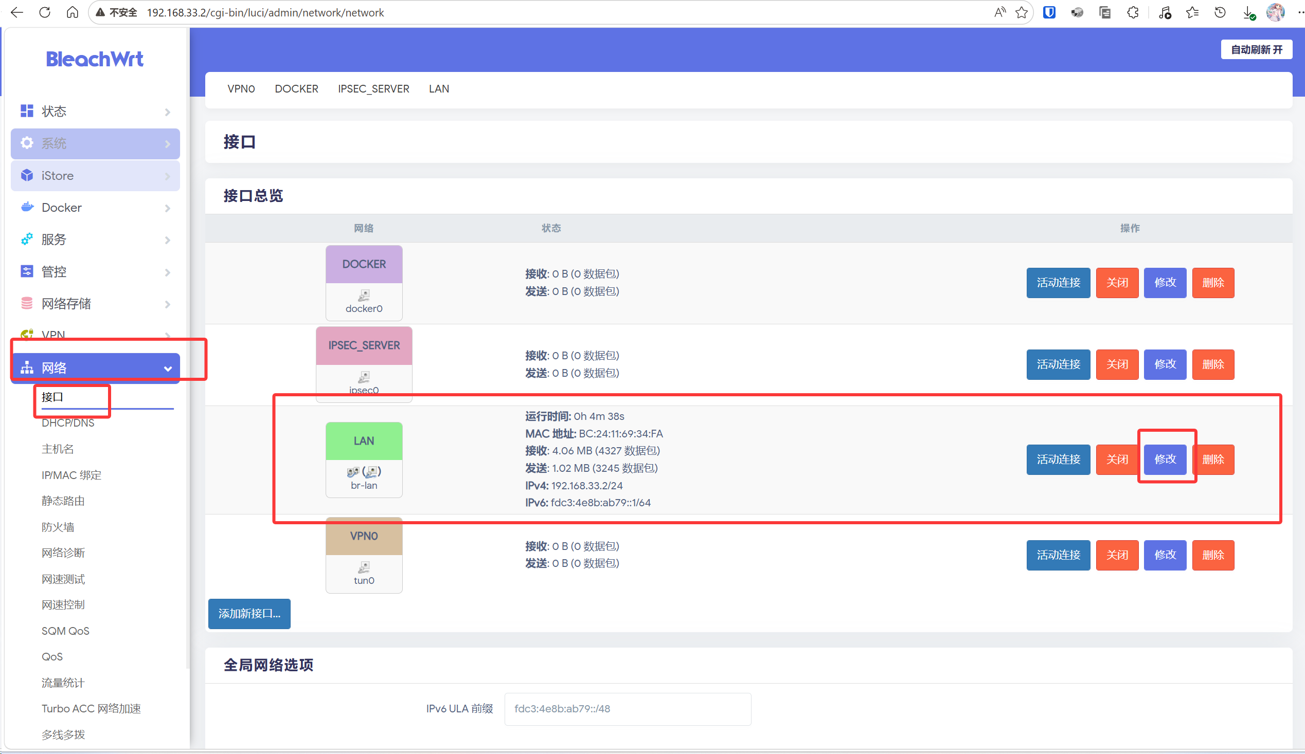 修改lan口的ip