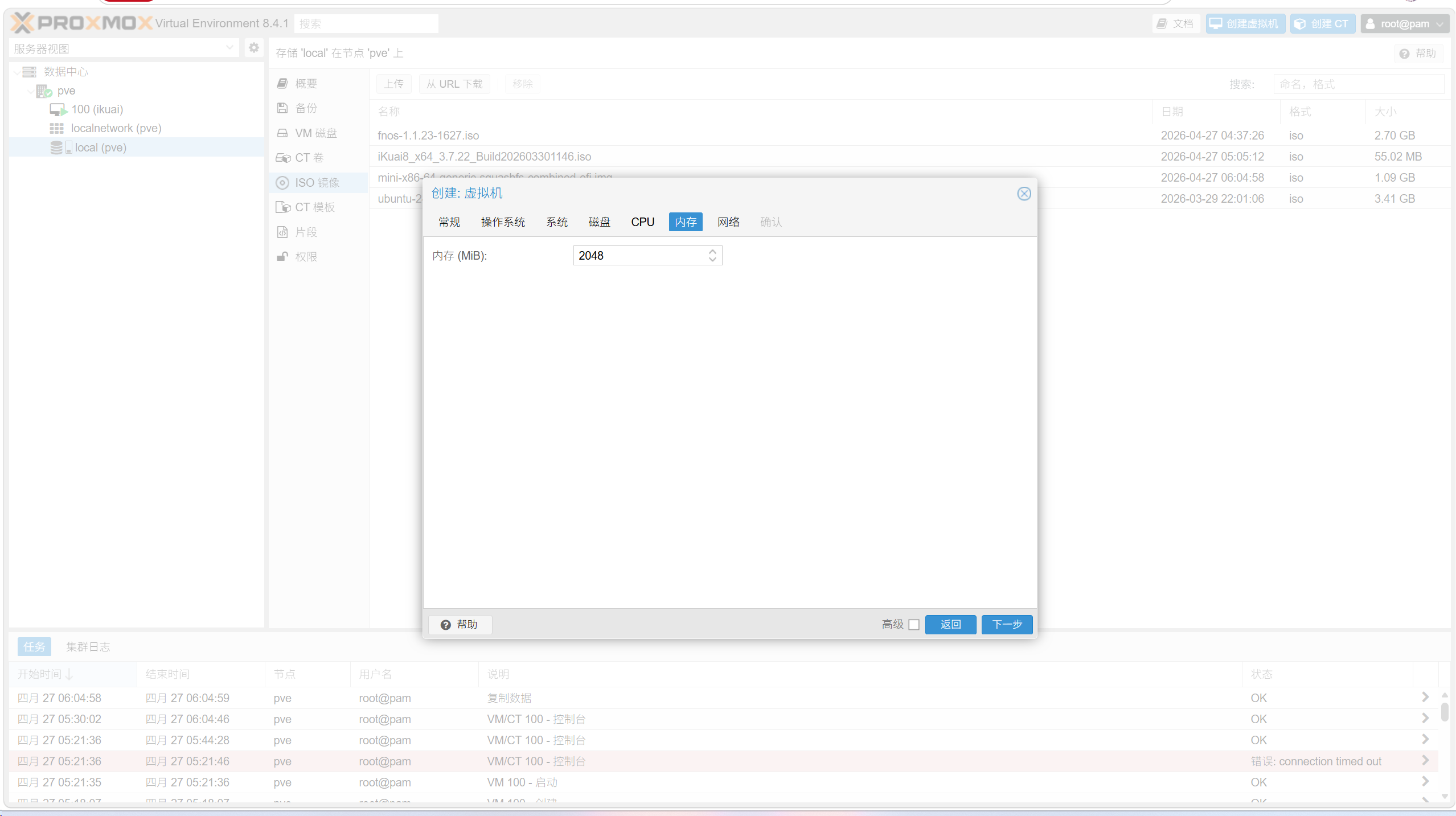 内存2048mb,下一步
