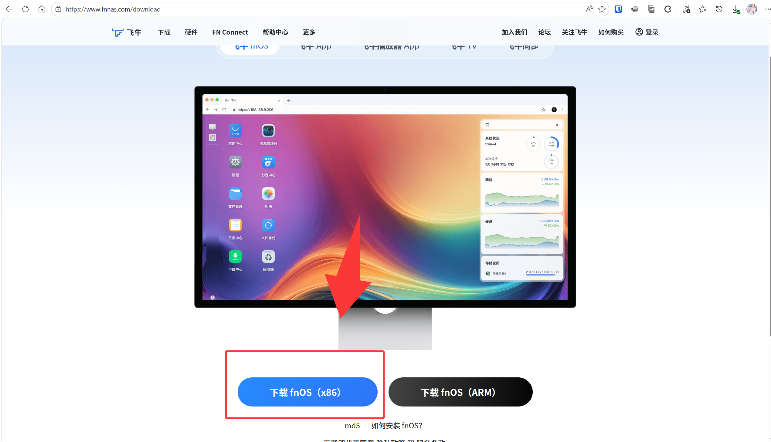 点击下载fnOS x86的