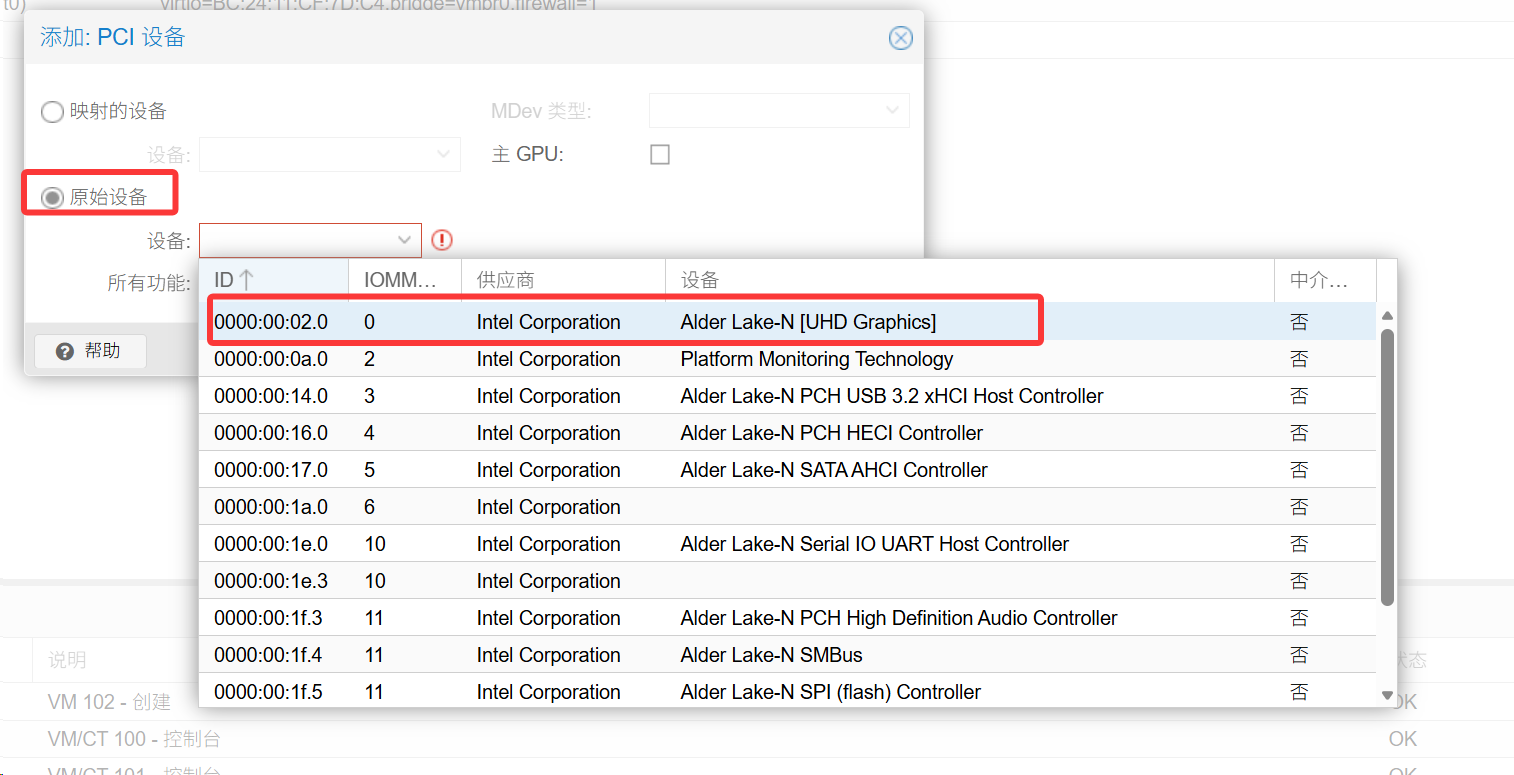 接下来的这个操作你可以忽略,因为这个是n100 cpu是可以做核显直通的,你的cpu是否有核显,是否可以直通,这个需要查找对应的教程
