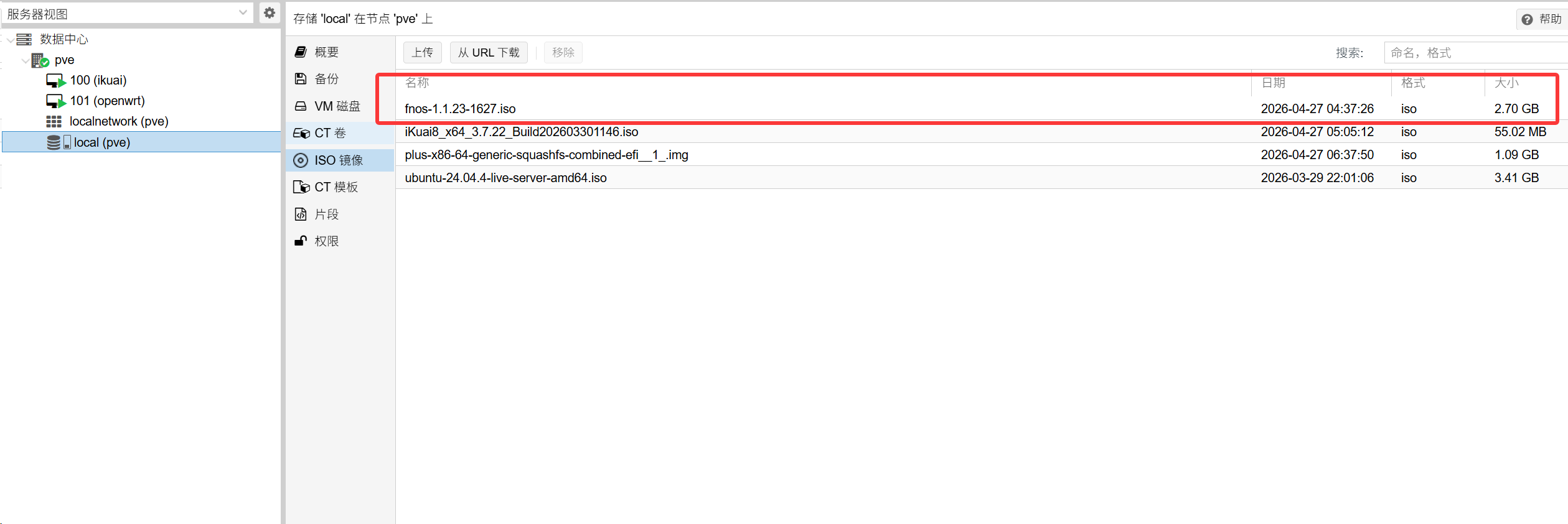 上传飞牛镜像到pve