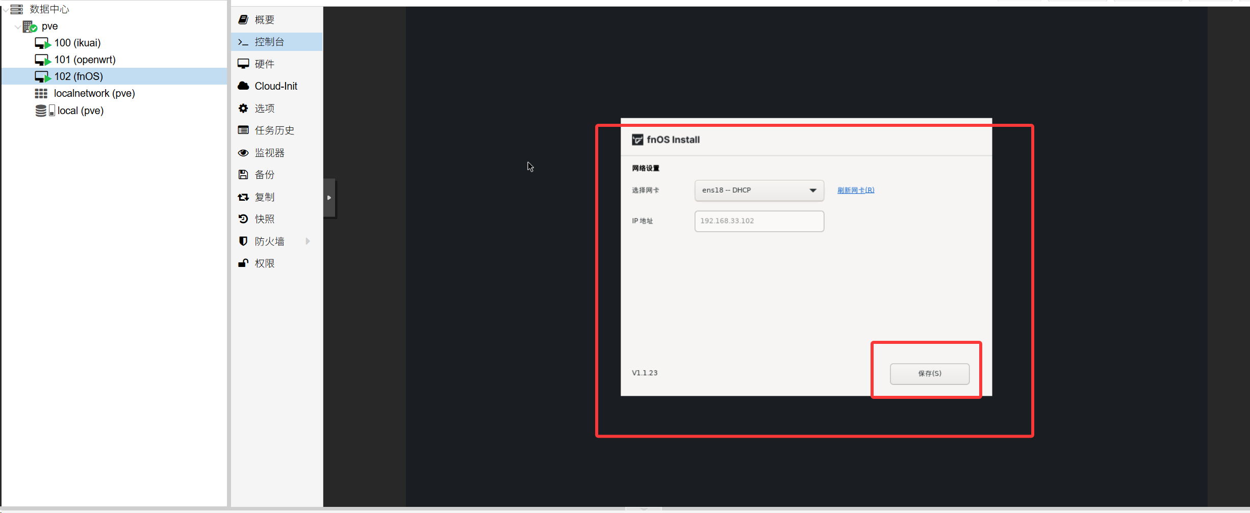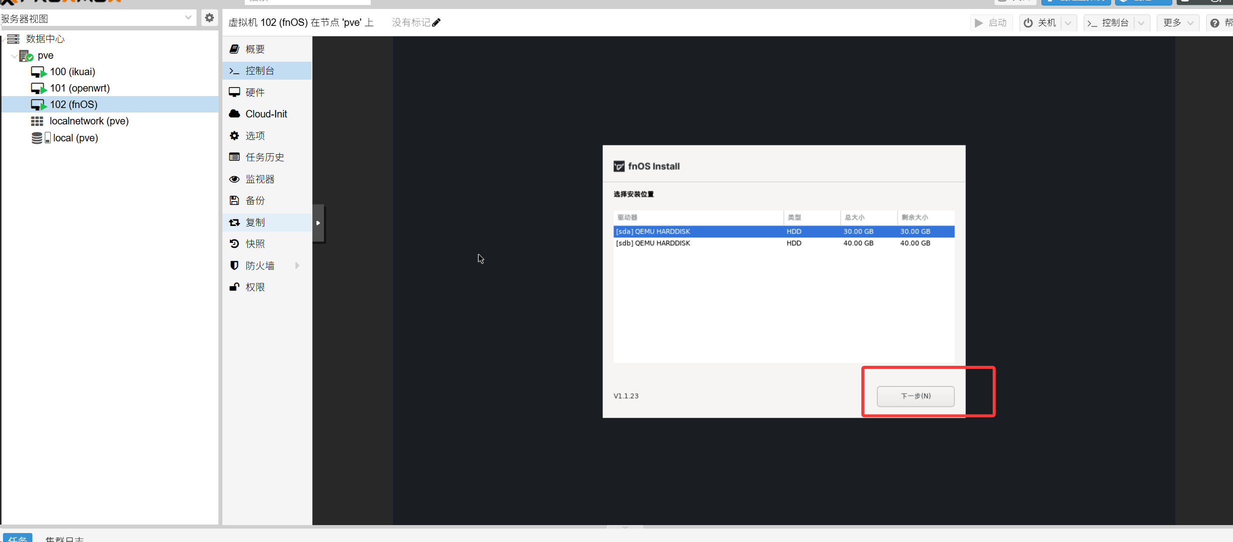 输入控制台的ip,进入飞牛界面安装飞牛