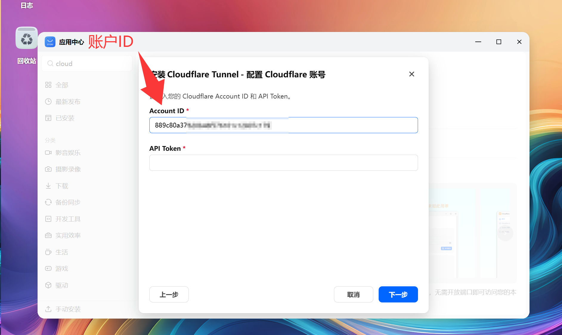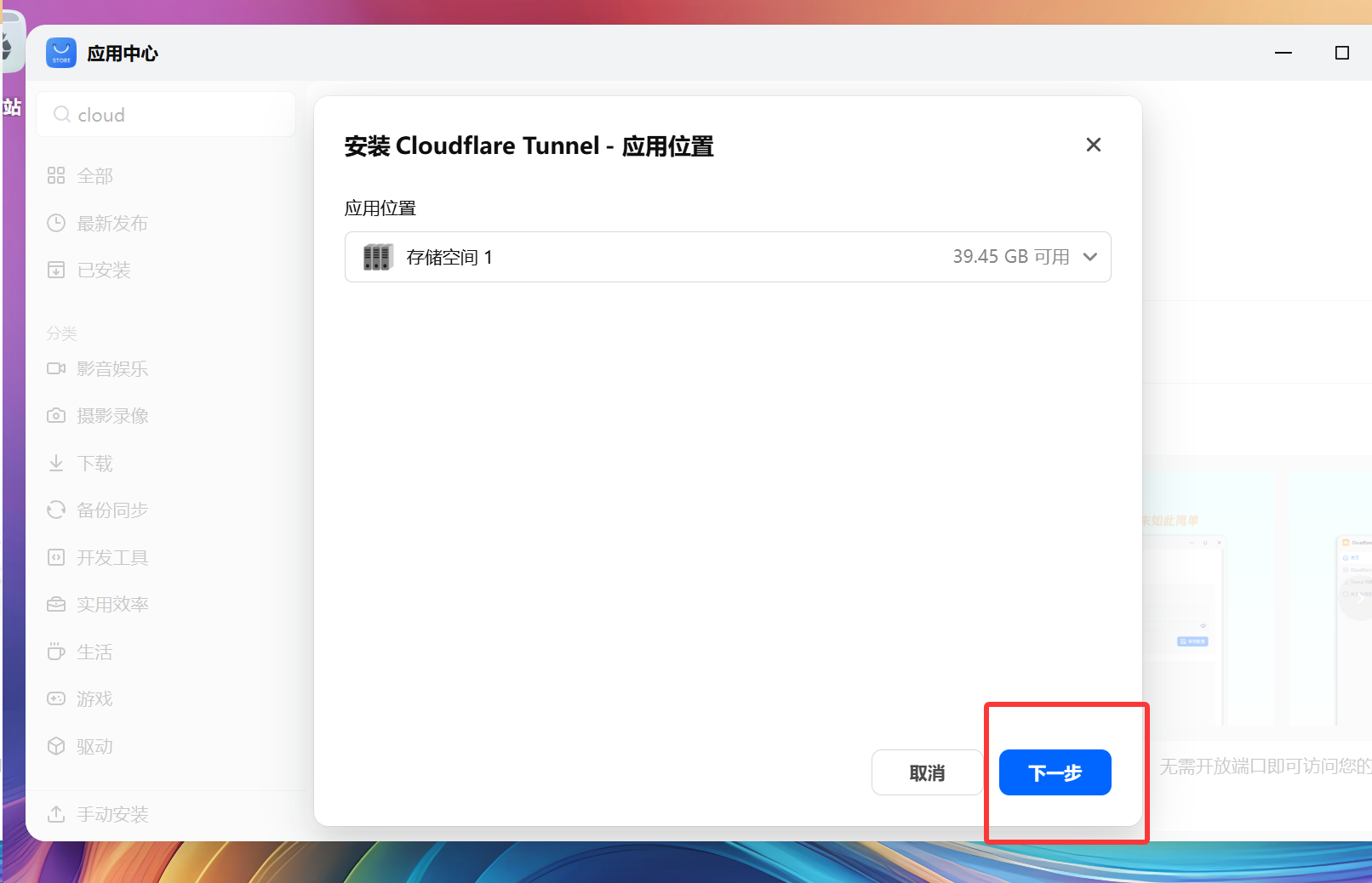 应用中心,Cloudflare Tunnel应用点击安装