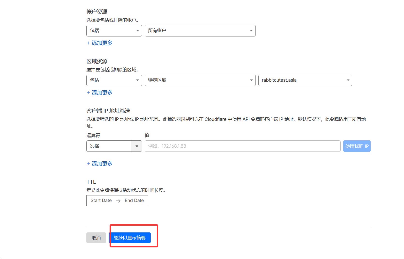 然后点击继续以显示摘要