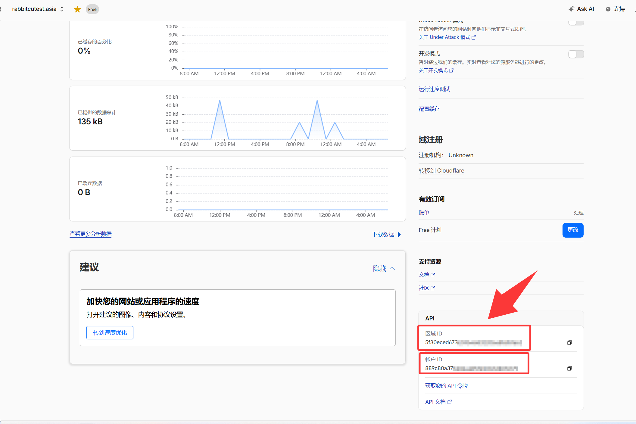 会看到一个区域ID和一个账号ID