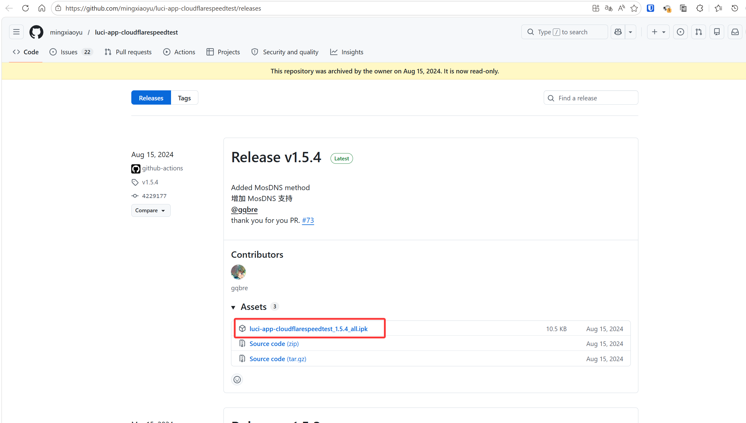 https://github.com/mingxiaoyu/luci-app-cloudflarespeedtest/releases