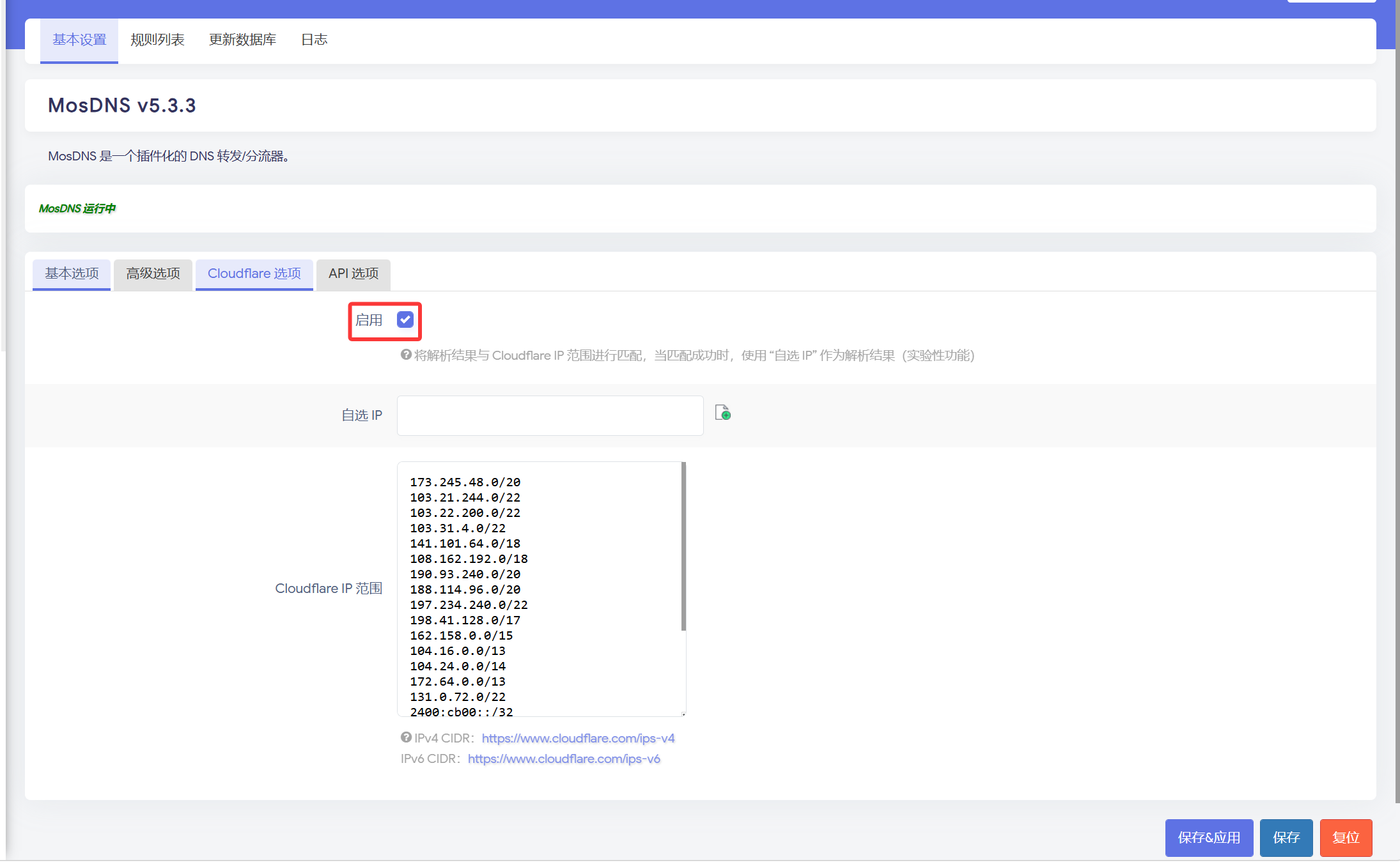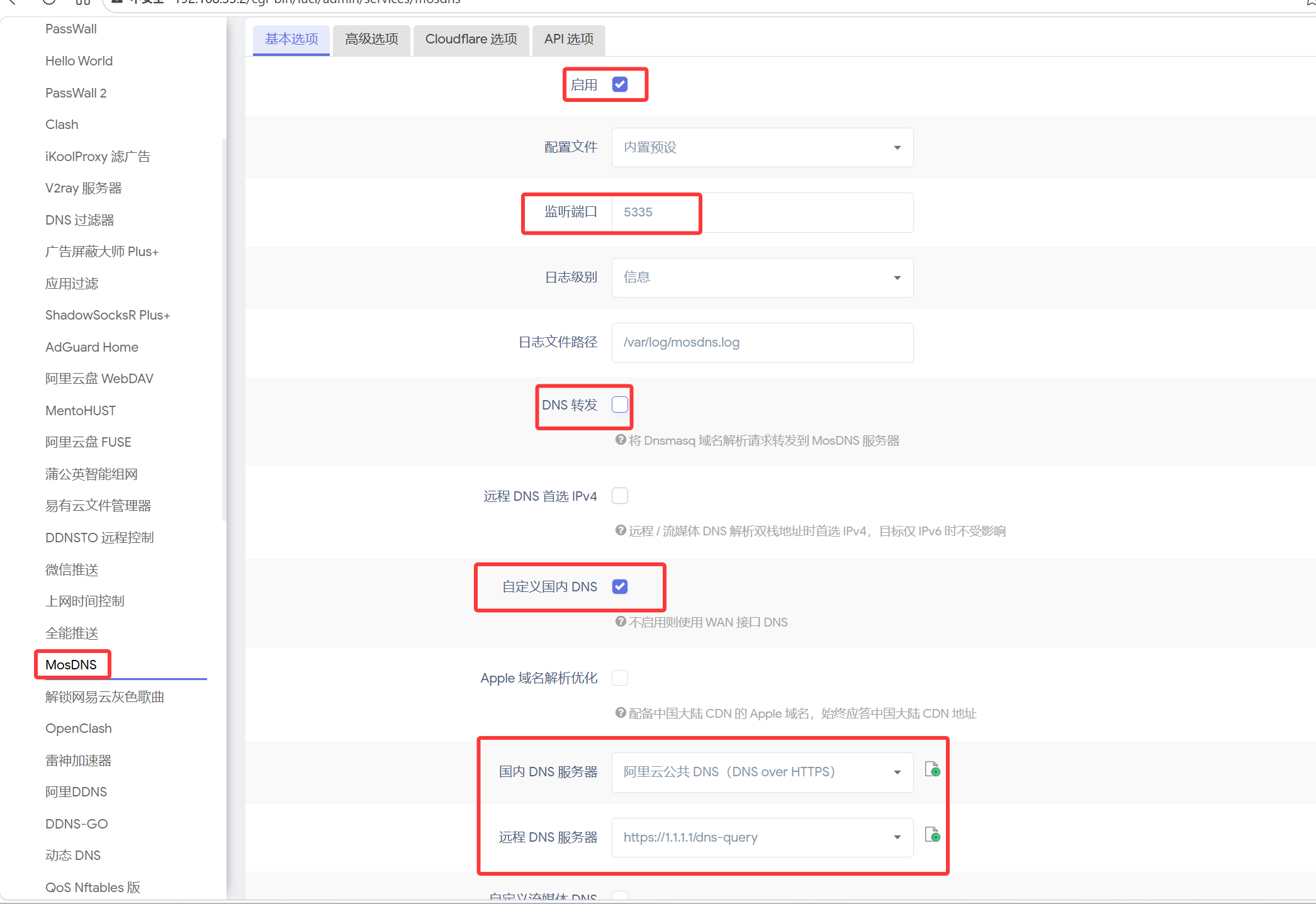 然后勾选启动——作为dnsmasq上游服务器——拉到最下边点击保存应用